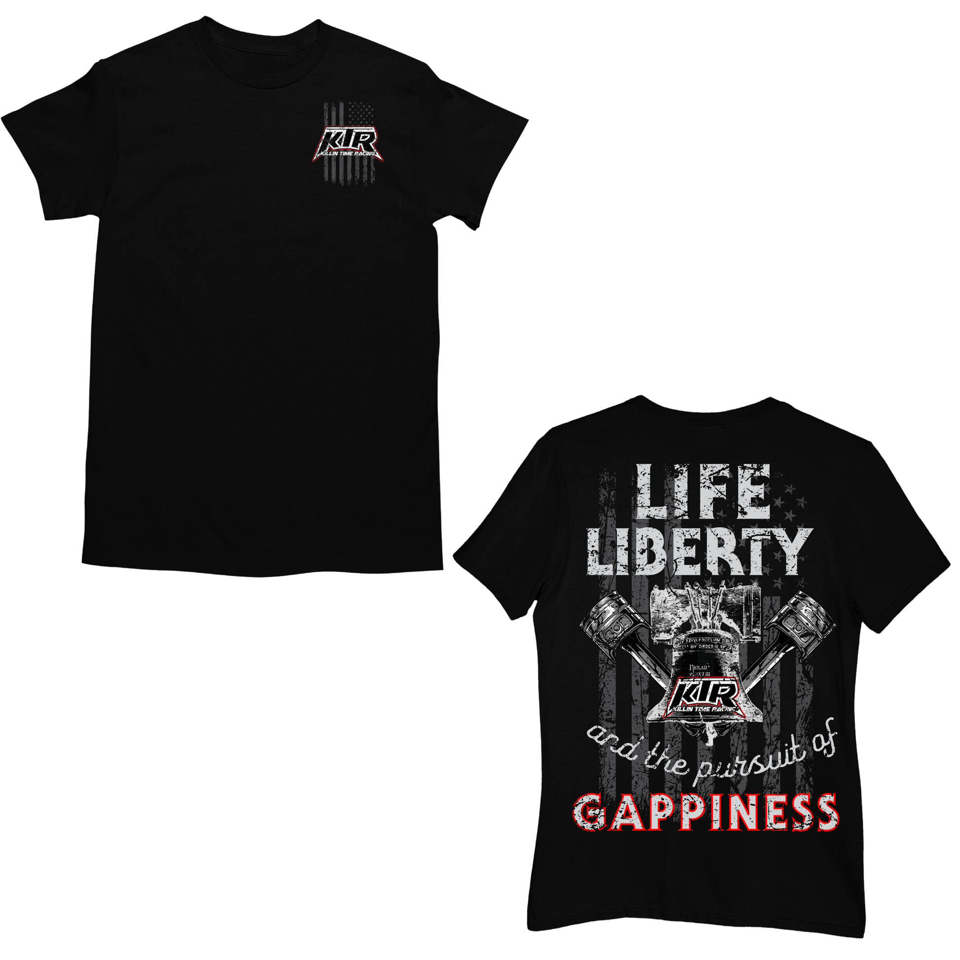 Brand new to the KTR 2024 apparel line up is The Life, Liberty & Pursuit of Gappiness T-shirt! This premium Tee is worn when you need to put the GAPP down!