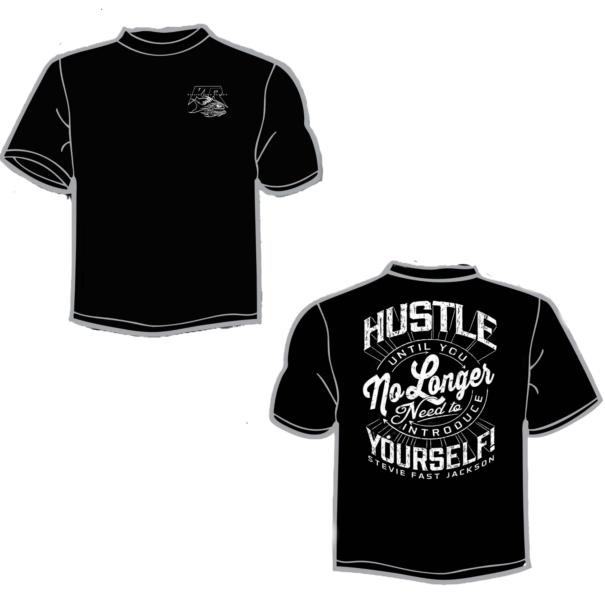 THESE BLACK GILDAN DRY BLEND SHIRTS FEATURE Stevie Fast new slogan: Hustle until you no longer need to introduce yourself! Stevie Fast Jackson
