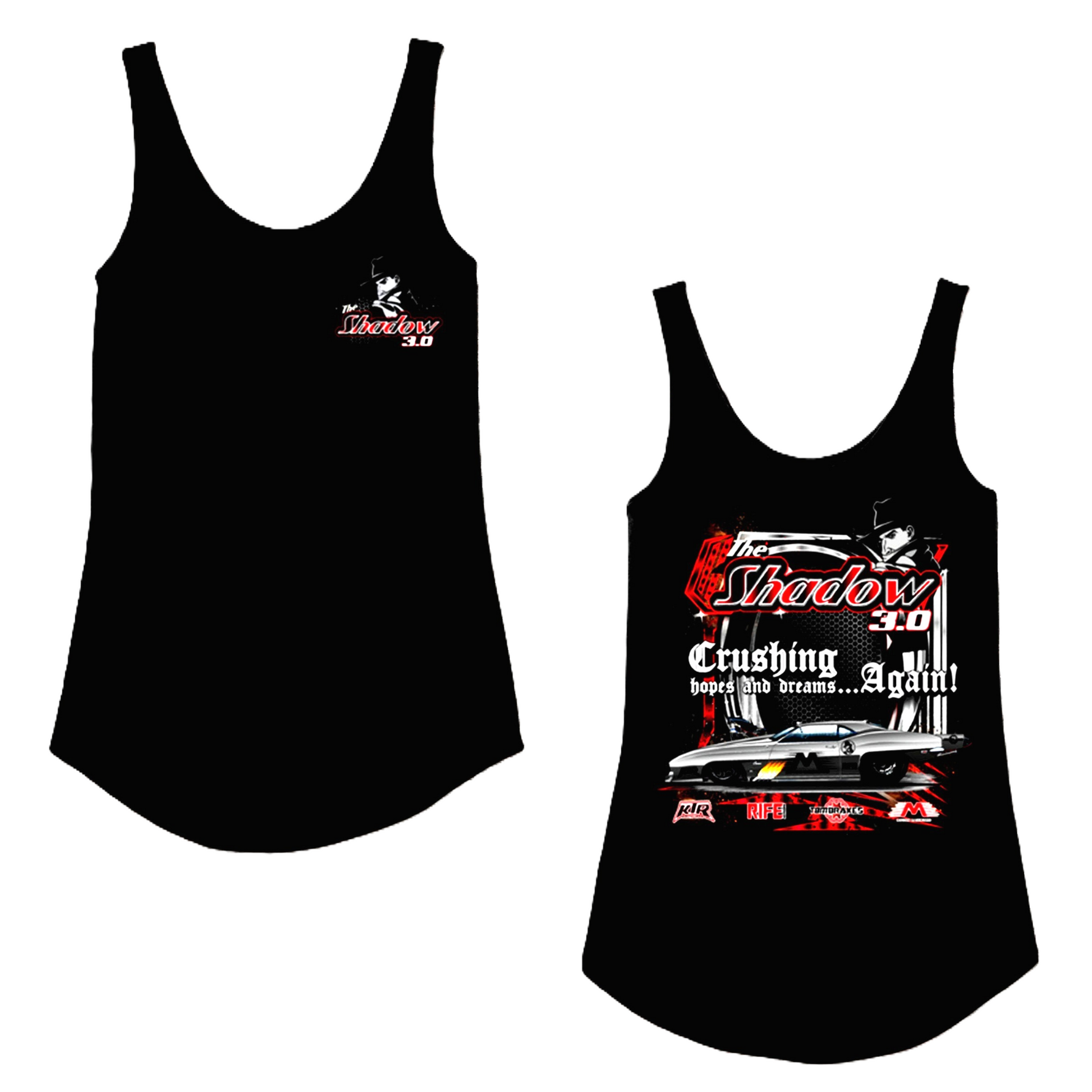 Brand new to the KTR 2024 apparel line up is the Female Tank The Shadow 3.0! This tank top features The SHADOW 3.0! The most feared door car in history!