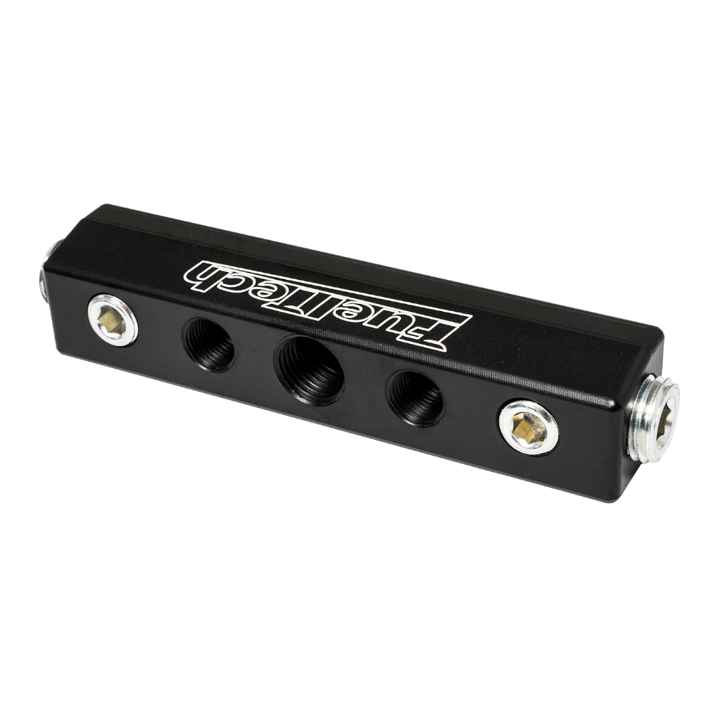 FuelTech's billet vacuum distribution manifold is the perfect solution for running and organizing all of the vacuum lines on your race car. With 7 vacuum ports (4 x 1/8 npt and 3 x 1/4 npt) there is plenty of room to run all of your vacuum lines for blow off valves, wastegates and more!
